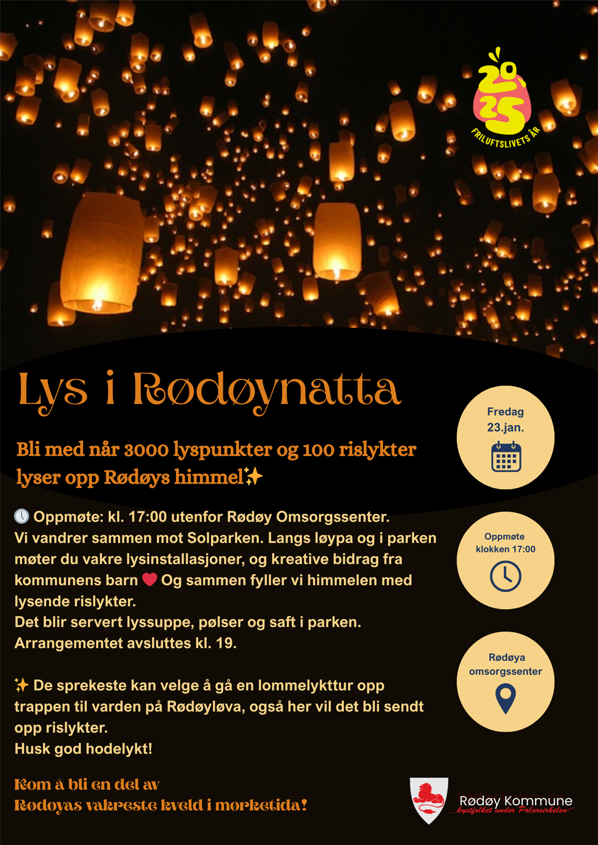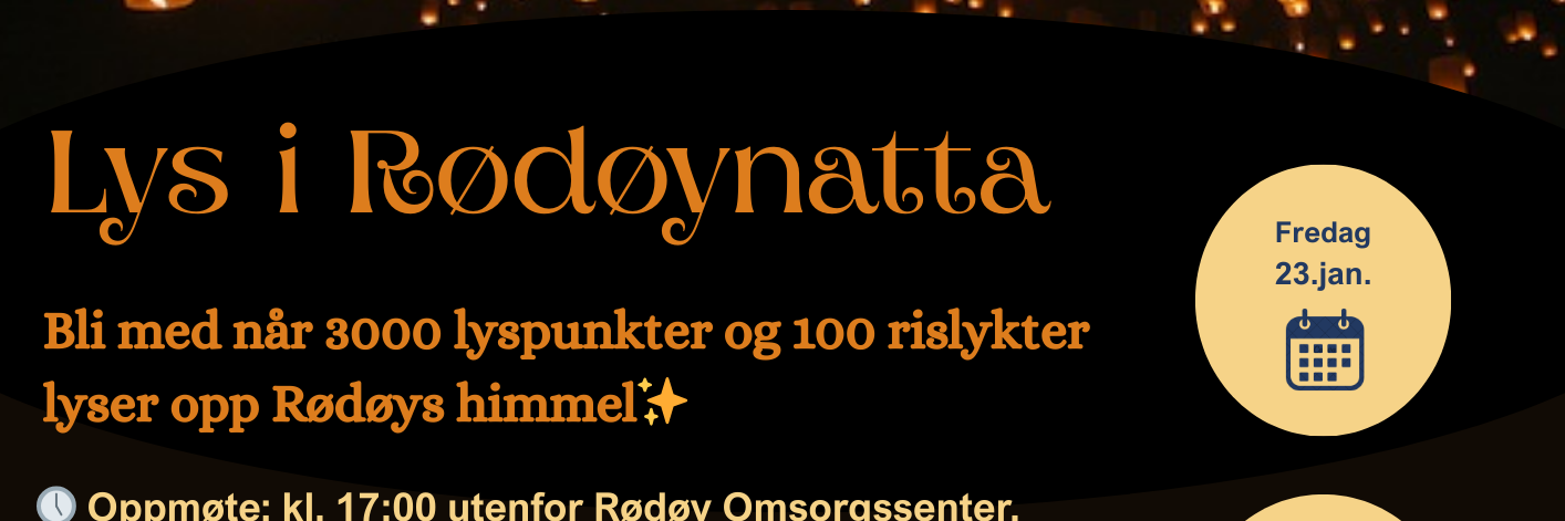 Vi inviterer alle kommunens innbyggere til “Lys i Rødøynatta” - en stemninsfull lysfest på Rødøya fredag 23. januar klokka 17.00-19.00.