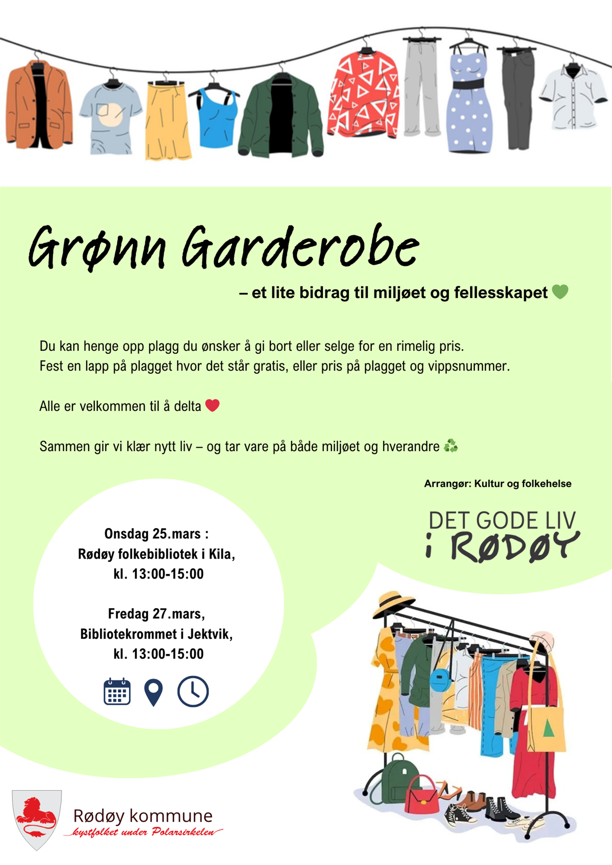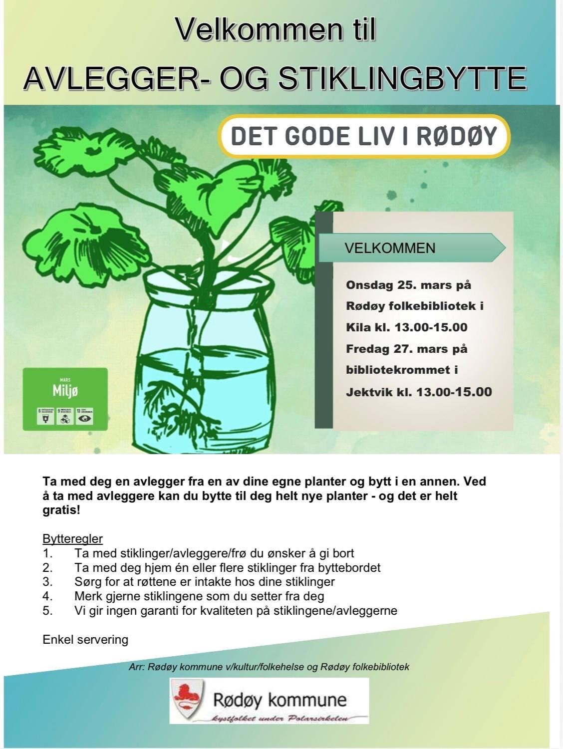 Bli med Rødøy folkebibliotek og kultur/folkehelse på bytteaksjon for klær, frø og avleggere på bibliotekrommet i Jektvika fredag 27. mars 13.00-15.00. Enkel servering.