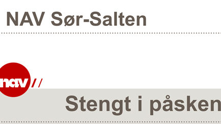 Nav Sør-Salten har personell på jobb for å håndtere nødhjelp/post i uke 14. Kritiske brukerhenvendelser skal skje via NAV Kontaktsenter på tlf 55 55 33 33, som har oversikten over hvem som er på jobb til enhver tid utfra hva henvendelsen gjelder.