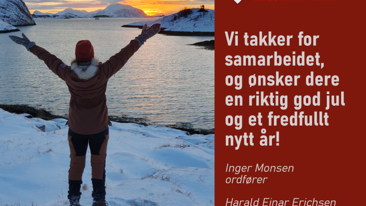 Vi ønsker alle en riktig god jul og et fredfullt nytt år! En ekstra julehilsen går til de av dere, som skal være på jobb i jula og gi gode tjenester til våre innbyggere.