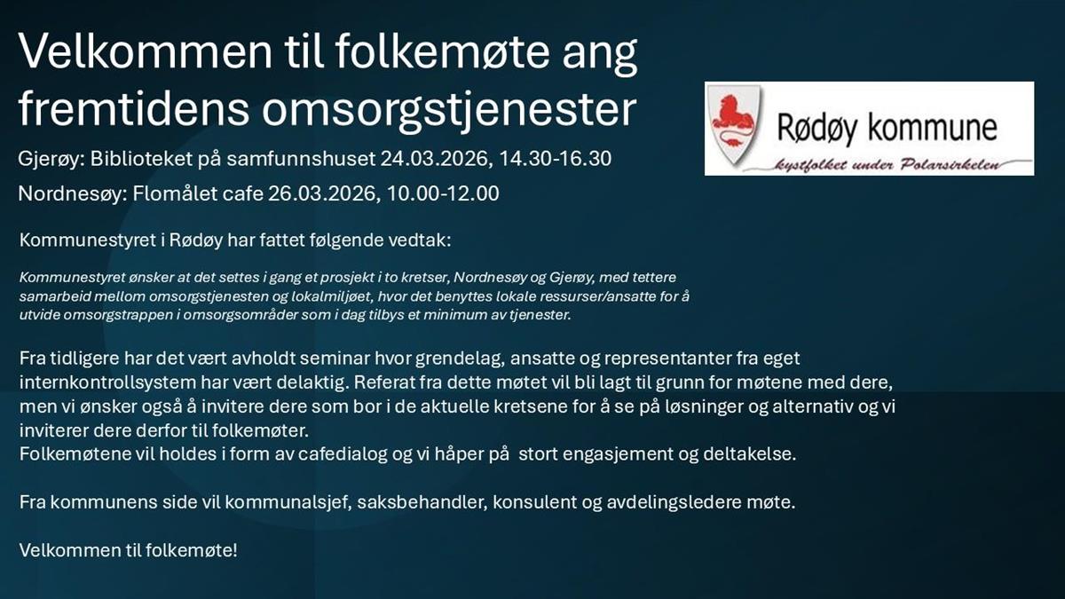 Folkemøter avholdes på Gjerøy 24. mars og Nordnesøy 26. mars.
