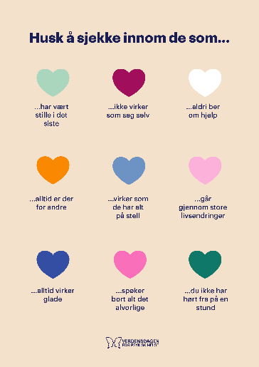 10. oktober er Verdensdagen for psykisk helse, og denne dagen markeres over hele verden i dagene og ukene rundt 10. oktober.
