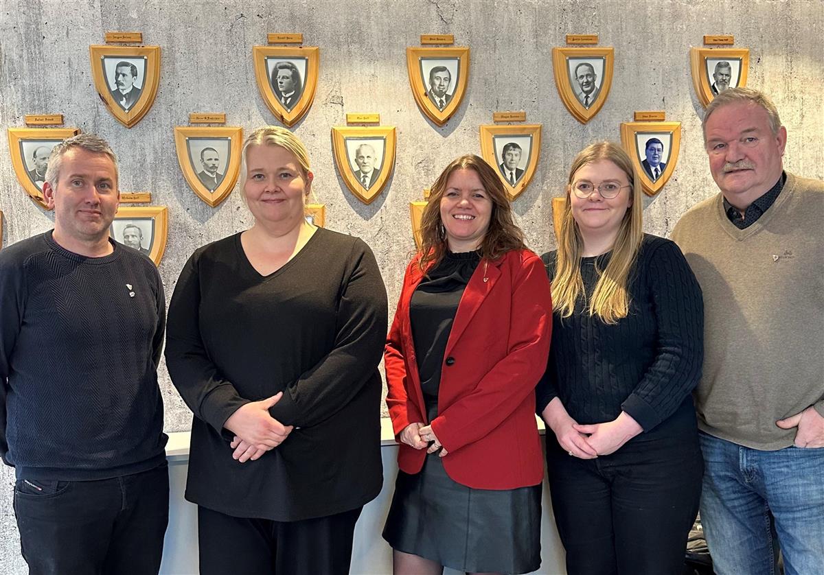 Fra venstre: Frank Kristiansen Heimdal, Siv Tove Hansen, Inger Dagmar Monsen, Sara Jørgine Lorentzen og Kjell Setvik. (Sara Lorentzen har for tiden fritak fra sine verv, og Henriette Blix er fast medlem og varaordfører fram til 1. mai 2026.)